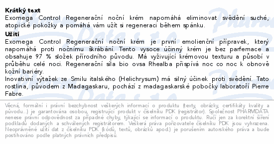Exomega Control Regenerační emolienční noční krém napomáhá eliminovat svědění suché, atopické pokožky a pomáhá vám užít...