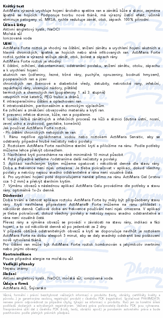 ActiMaris výrazně urychluje hojení širokého spektra ran a zánětů kůže a sliznic, zejména špatně se hojících. Podporuje tvorbu nové tkáně, má výrazný čistící efekt, účinně eliminuje patogeny vč. MRSA, rychle redukuje zánět, otok, zápach. 100% přírodní.