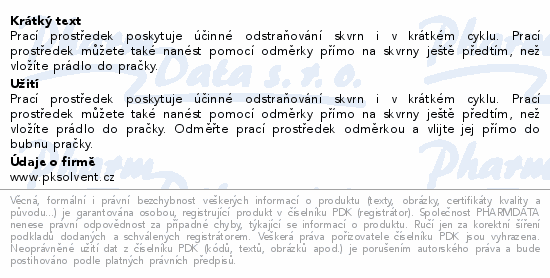 Prací prostředek poskytuje účinné odstraňování skvrn i v krátkém cyklu. Prací prostředek můžete také nanést pomocí odměrky přímo na skvrny ještě předtím, než vložíte prádlo do pračky.
