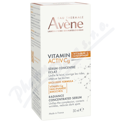 AVENE Vitamin Activ Cg Korekční rozjasňující sérum vyhlazuje vrásky, rozjasňuje pleť a redukuje výskyt tmavých skvrn díky třem aktivním látkám: vitamin Cg* + bakuchiol + niacinamid-