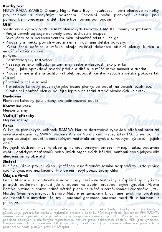 Bambo Dreamy Night Pants 4-7let Boy 15-35kg 10ks