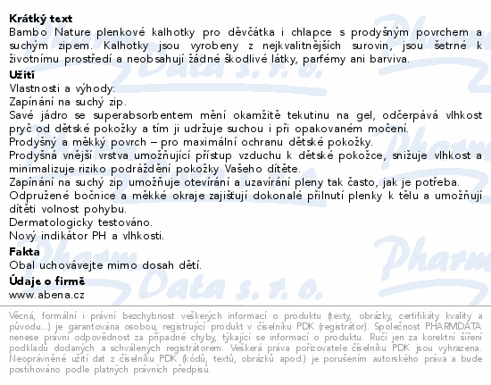 Bambo Nature plenkové kalhotky pro děvčátka i chlapce s prodyšným povrchem a suchým zipem. Kalhotky jsou vyrobeny z nejkvalitnějších surovin, jsou šetrné k životnímu prostředí a neobsahují žádné škodlivé látky, parfémy ani barviva.