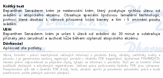 Bepanthen Sensiderm krém je nesteroidní krém, který poskytuje rychlou úlevu od svědění u atopického ekzému. Obsahuje speciální lipidovou lamelární technologii, pomocí které dochází k obnově přirozené kožní bariéry a tím i k zmírnění pocitu svědění.