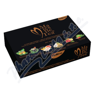 Biogena Majestic Maxi obsahuje 6 příchutí čajů - Noni&Švestka, Aloe vera&Ostružina, Mango&Růže, Hruška&Yerba Maté, Malina&Camu Camu, Goji&Limetka.