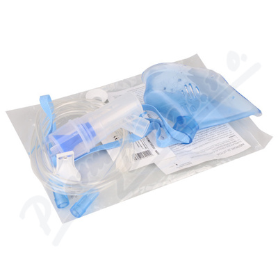 Sada příslušenství ke kompresorovým inhalátorům Diagnostic P1 Plus a Diagnostic Econstellation obsahuje masku pro dospělé, vzduchovou hadici 100 cm, rozprašovač DUO s regulací velikosti částek (nebulizátor), náustek.