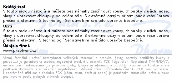S touto sadou nástrojů si můžete bez námahy zastřihovat vousy, chloupky v uších, nose, vlasy a upravovat chloupky po celém těle. S extrémně ostrým břitem bude vaše úprava přesná a efektivní. S technologií SensitiveTrim své tělo upravíte bezpečně.