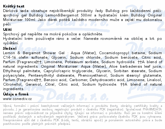 Dárková sada obsahuje nejoblíbenější produkty řady Bulldog pro každodenní péči: sprchový gel Bulldog Lemon&Bergamot 500ml a hydratační krém Bulldog Original Moisturiser 100ml. Jako dárek potěší každého moderního muže a zajistí mu dokonalou péči.