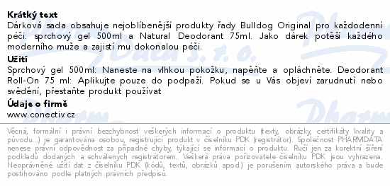 Dárková sada obsahuje nejoblíbenější produkty řady Bulldog Original pro každodenní péči: sprchový gel 500ml a Natural Deodorant 75ml. Jako dárek potěší každého moderního muže a zajistí mu dokonalou péči.