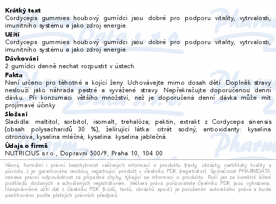 Cordyceps gummies houbový gumídci jsou dobré pro podporu vitality, vytrvalosti, imunitního systému a jako zdroj energie.