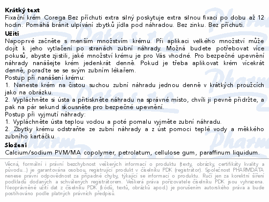 Fixační krém Corega Bez příchuti extra silný poskytuje extra silnou fixaci po dobu až 12 hodin. Pomáhá bránit ulpívání zbytků jídla pod náhradou. Bez zinku. Bez příchuti.
