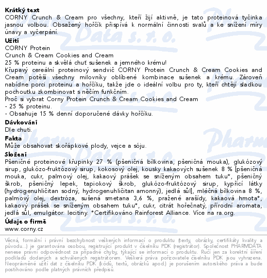 CORNY Crunch & Cream pro všechny, kteří žijí aktivně, je tato proteinová tyčinka jasnou volbou. Obsažený hořčík přispívá k normální činnosti svalů a ke snížení míry únavy a vyčerpání.
