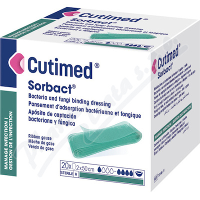 Cutimed Sorbact je antimikrobiální krytí. Odstraní baktérie a další mikroorganismy z kontaminovaných nebo infikovaných ran s exsudátem. Je vyroben z tkanin potažených dialkylkarbamoylchloridem (DACC), látkou zajišťující účinnou absorpci mikroorganismů.