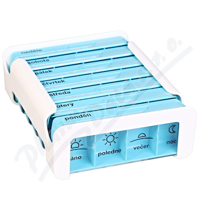 Moderní a praktický dávkovač na léky. Výstupky na krabičce denního dávkovače na léky umožňují snadnou manipulaci a zakulacený...