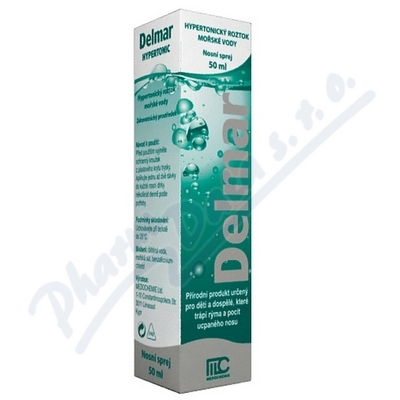Delmar Hypertonic je nosní sprej s mořskou solí. Po aplikaci na oteklé nosní sliznice přirozeným mechanismem osmózy odvádí vodu, čímž snižuje otok a usnadňuje funkci nosní sliznice, přináší úlevu při rýmě a pocitu ucpaného nosu.