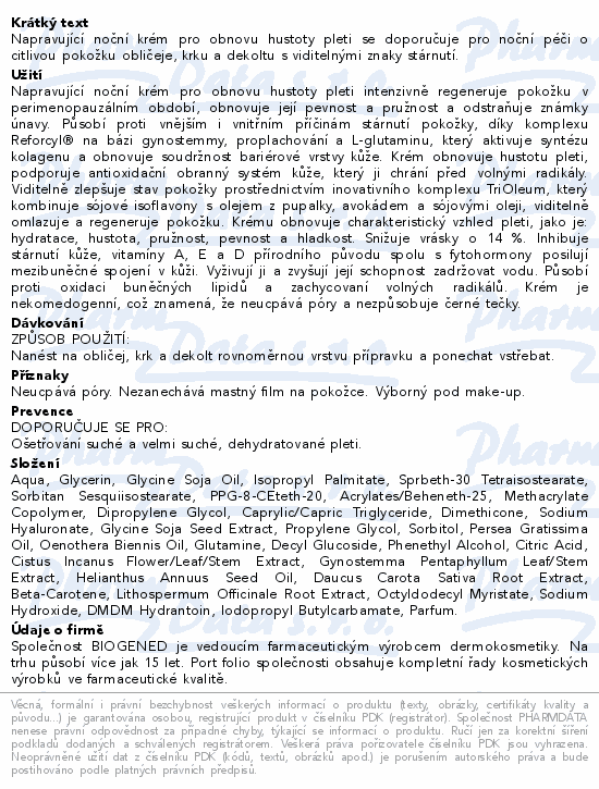 Napravující noční krém pro obnovu hustoty pleti se doporučuje pro noční péči o citlivou pokožku obličeje, krku a dekoltu s viditelnými znaky stárnutí.