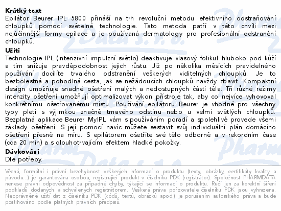 Epilátor Beurer IPL 5800 přináší na trh revoluční metodu efektivního odstraňování chloupků pomocí světelné technologie. Tato metoda patří v této chvíli mezi nejúčinnější formy epilace a je používaná dermatology pro profesionální odstranění chloupků.