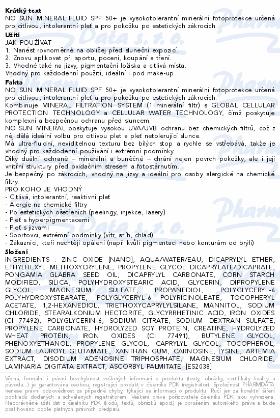 NO SUN MINERAL FLUID SPF 50+ je vysokotolerantní minerální fotoprotekce určená pro citlivou, intolerantní pleť a pro pokožku po estetických zákrocích.