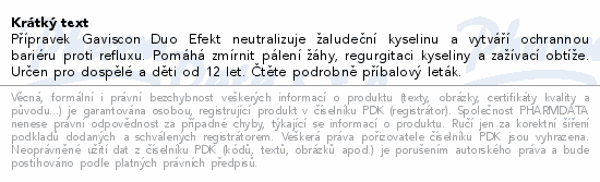 Gaviscon Duo Efekt Žvýkací tablety je kombinace dvou antacid (uhličitanu vápenatého a hydrogenuhličitanu sodného) a alginátu a...
