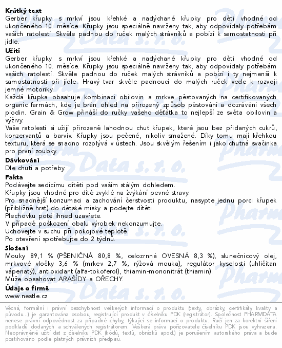 Gerber křupky s mrkví jsou křehké a nadýchané křupky pro děti vhodné od ukončeného 10. měsíce. Křupky jsou speciálně navrženy tak, aby odpovídaly potřebám vašich ratolestí. Skvěle padnou do ruček malých strávníků a pobízí k samostatnosti při jídle.