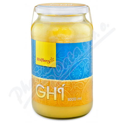 Ghí 1000 ml Wolfberry. Ghí je máselný tuk vyrobený podle starodávného ajurvédského receptu přepuštěním 100% másla.