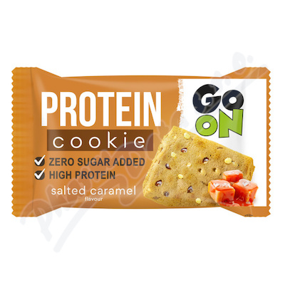 GO ON Proteinová sušenka je chutná sušenka se slaným karamelem. Obohacená o WPC protein (kompletní protein) a MPI izolát mléčného proteinu. Vysoký obsah vlákniny. Bez palmového oleje. Vysoký obsah bílkovin - 25, 2%.