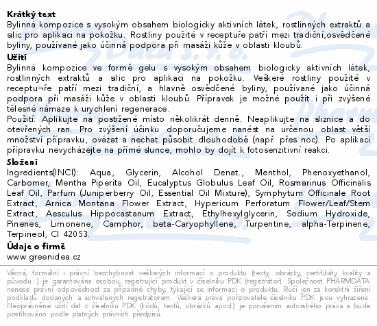 Masážní bylinná kompozice ve formě gelu z biologicky aktivních látek, extraktů a silic, používaná při bolestech kloubů....