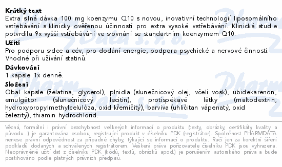 Extra silná dávka 100 mg koenzymu Q10 s novou, inovativní technologií liposomálního vstřebávání s klinicky ověřenou účinností...