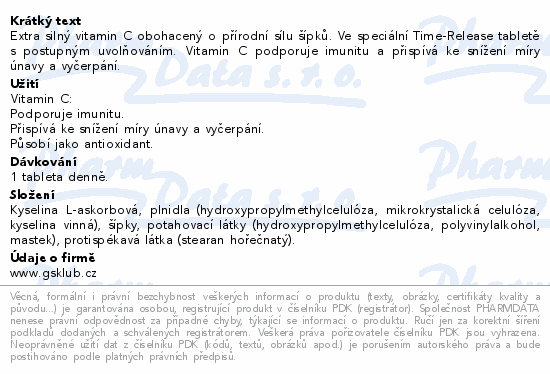 Přípravek obsahuje vitamin C ve speciální tabletě Time-Release, která zajišťuje jeho postupné uvolňování. Navíc je obohacen o...