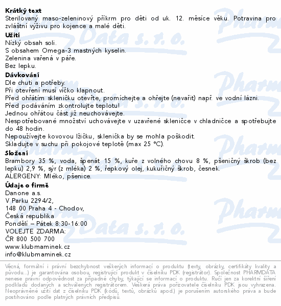 Masozeleninový sterilovaný příkrm pro malé děti od ukončeného 12. měsíce. Je vyroben z pečlivě vybraných surovin, obsahuje...