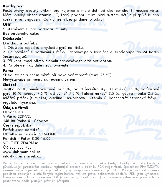Pasterovaný ovocný příkrm pro kojence a malé děti od ukončeného 6. měsíce věku. Mám vysoký obsah vitamínu C, který podporuje imunitní systém dětí a přispívá k jeho správnému fungování. Co víc, jsem bez přidaného cukru!