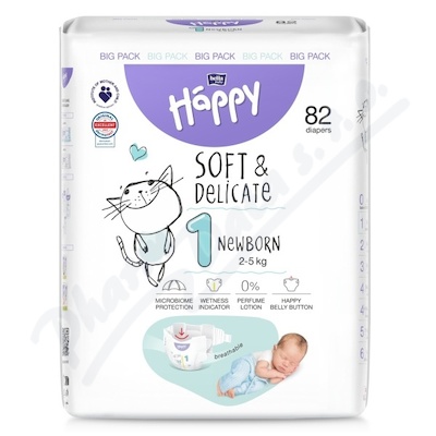 Happy Soft&Delicate 1 dětské pleny 2-5kg 82ks