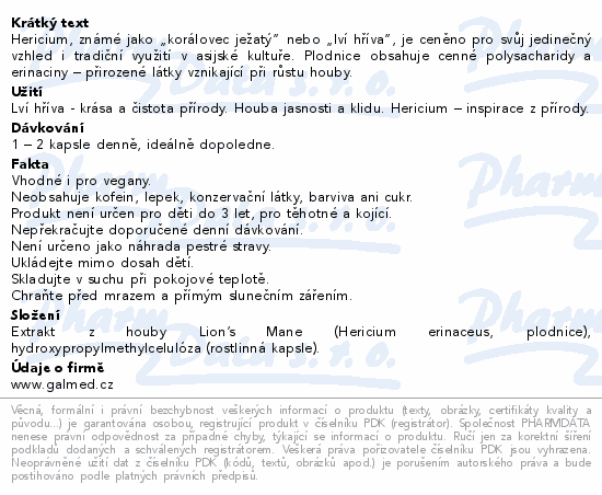 Hericium 500mg cps.90 Galmed
