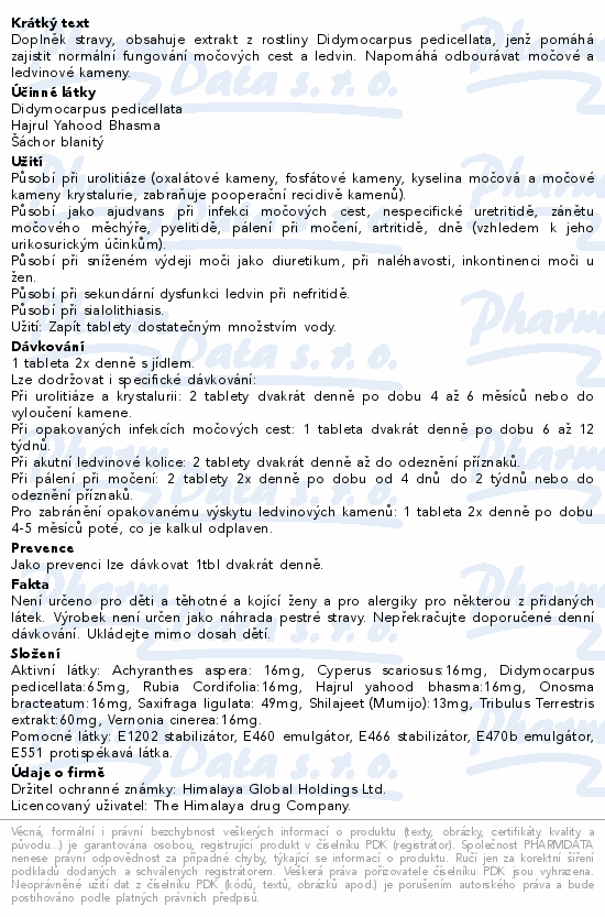 Doplněk stravy, obsahuje extrakt z rostliny Didymocarpus pedicellata, jenž pomáhá zajistit normální fungování močových cest a ledvin. Napomáhá odbourávat močové a ledvinové kameny.