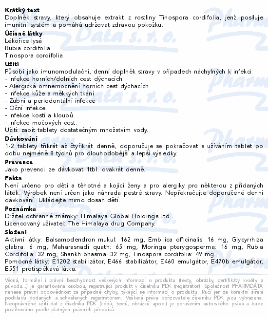 Doplněk stravy, který obsahuje extrakt z rostliny Tinospora cordifolia, jenž posiluje imunitní systém a pomáhá udržovat zdravou pokožku.