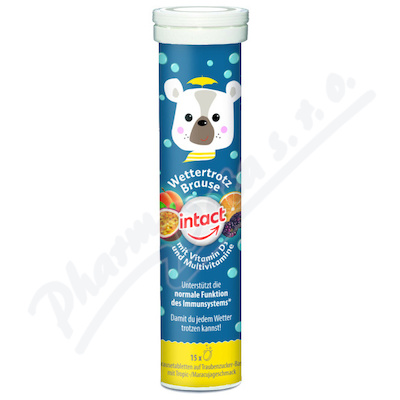 Doplněk stravy, vitaminový přípravek se sladidly. Intact statný medvěd s 11 vitamíny a hroznovým cukrem, s příchutí tropic. Bez lepku a laktózy. Určeno pro děti od 4 let.
