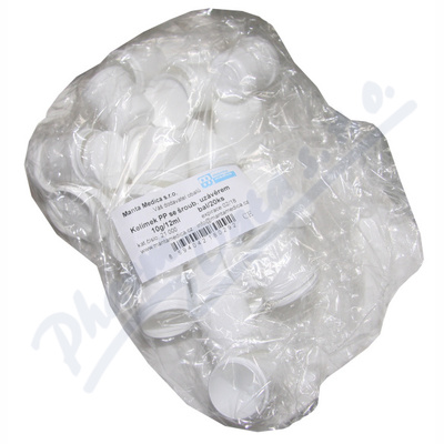 Plastový bílý kelímek PP se šroubovacím uzávěrem, vyrobený z polypropylenu (PP). Pomocný materiál určený pro lékárny - na...
