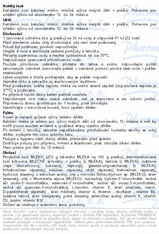 Kendamil kozí batolecí mléko, mléčná výživa malých dětí v prášku. Potravina pro zvláštní výživu od ukončeného 12. do 36. měsíce.