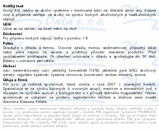 Horký Kitl Jablko se skořicí vyrábíme v limitované edici na chladné zimní dny. Krásně voní a příjemně zahřeje. Je skvělý na výrobu horkých alkoholických a nealkoholických nápojů.