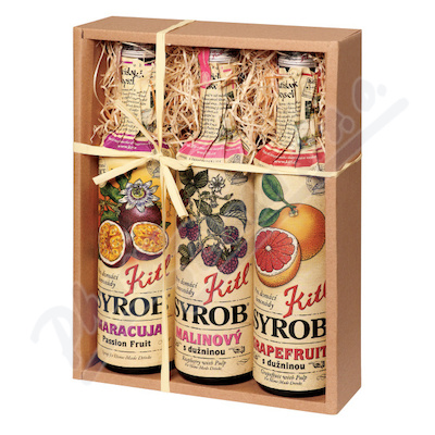 Dárkové balení ovocných sirupů Kitl. Obsahuje 3x 500 ml – Kitl Syrob Maracuja, Kitl Syrob Malinový a Kitl Syrob Grapefruit. Jedná se o nejoblíbenější sirupy Kitl pro osvěžující koktejly a domácí limonády.