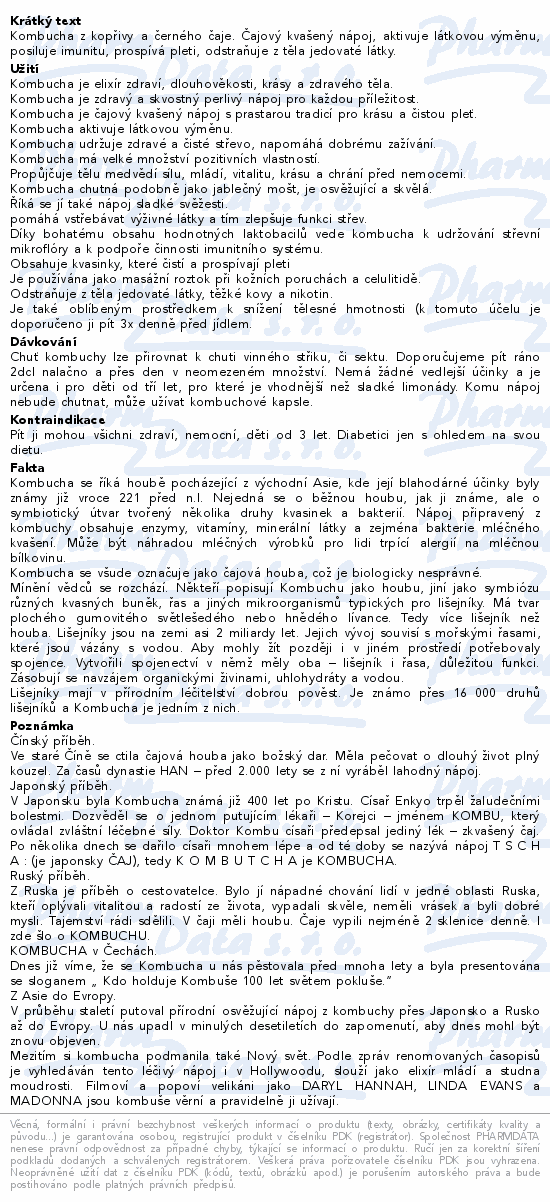 Kombucha z kopřivy a černého čaje. Čajový kvašený nápoj, aktivuje látkovou výměnu, posiluje imunitu, prospívá pleti, odstraňuje z těla jedovaté látky.