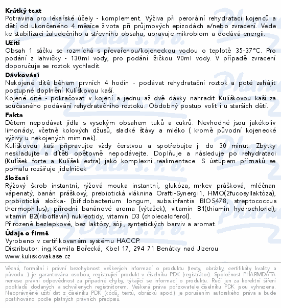 Potravina pro lékařské účely - komplement. Výživa při perorální rehydrataci kojenců a dětí od ukončeného 4 měsíce života při průjmových epizodách a