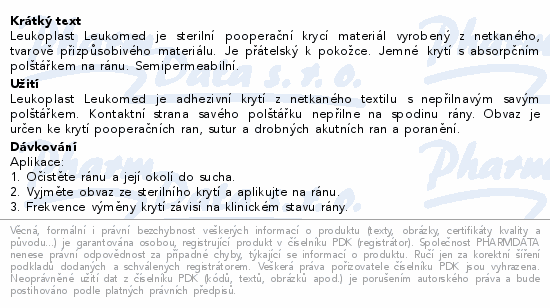 Leukoplast Leukomed je sterilní pooperační krycí materiál vyrobený z netkaného, tvarově přizpůsobivého materiálu. Je přátelský k pokožce. Jemné krytí s absorpčním polštářkem na ránu. Semipermeabilní.