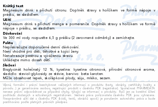 Magnesium drink s příchutí manga a pomeranče. Doplněk stravy s hořčíkem ve formě nápoje v prášku, se sladidlem.