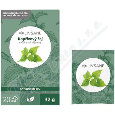 Čaj z listu kopřivy. Plněno do dvoukomorových nálevových sáčků, každý sáček je v individuálním přebalu pro zachování čerstvosti.