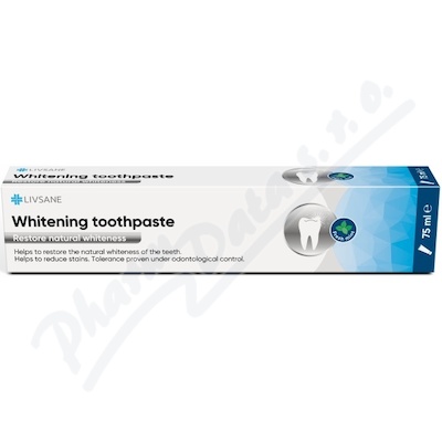 Zubní pasta bělicí napomáhá obnovit přirozenou bělost zubů. Napomáhá odstraňovat skvrny. Snášenlivost přípravku prokázaná pod dohledem zubního lékaře. Obsahuje monofluorfosforečnan sodný (1450 ppm F). Určeno pouze pro dospělé.