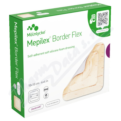 Mepilex Border Flex je samolepicí absorpční krytí, které udržuje vlhké prostředí rány. Krytí má speciální kontaktní vrstvu na rány Safetac® z měkkého silikonu. Minimalizuje bolest u pacientů a trauma v ráně a jejím okolí při odstraňování krytí.