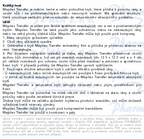 Mepilex Transfer je měkké, tenké a velmi pohodlné krytí, které přiléhá k povrchu rány a okolní kůži i na problematičtějších nebo nerovných místech. Má speciální strukturu, která umožňuje vertikální přenos exsudátu do sekundárního absorpčního polštářku.