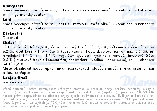 Směs pečených ořechů se solí, chilli a limetkou - směs oříšků v kombinaci s habanero chilli - gurmánský zážitek.