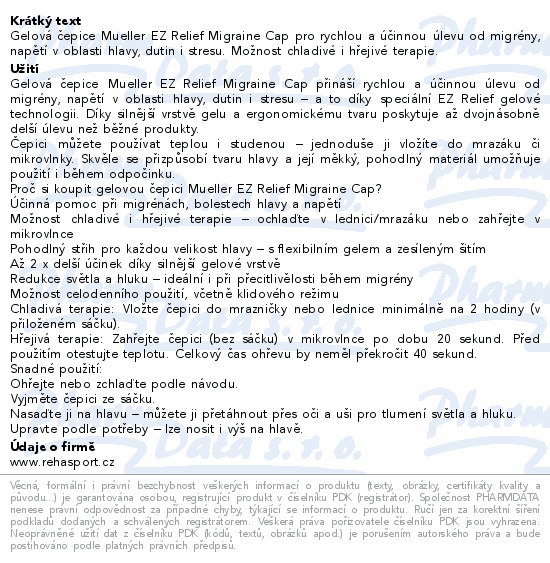 Mueller gelová čepice při bolesti hlavy