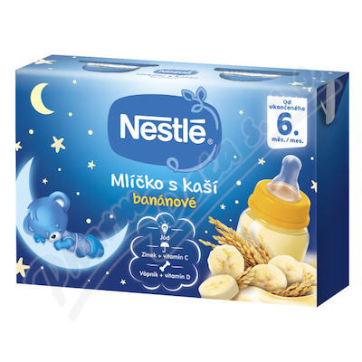 NESTLÉ Mlíčko s kaší banánové je hotový příkrm pro kojence od ukončeného 6. měsíce, který uspokojí i ta nejnáročnější bříška našich nejmenších. Je připraveno z kvalitního mléka a zahuštěné oblíbenou kaší.